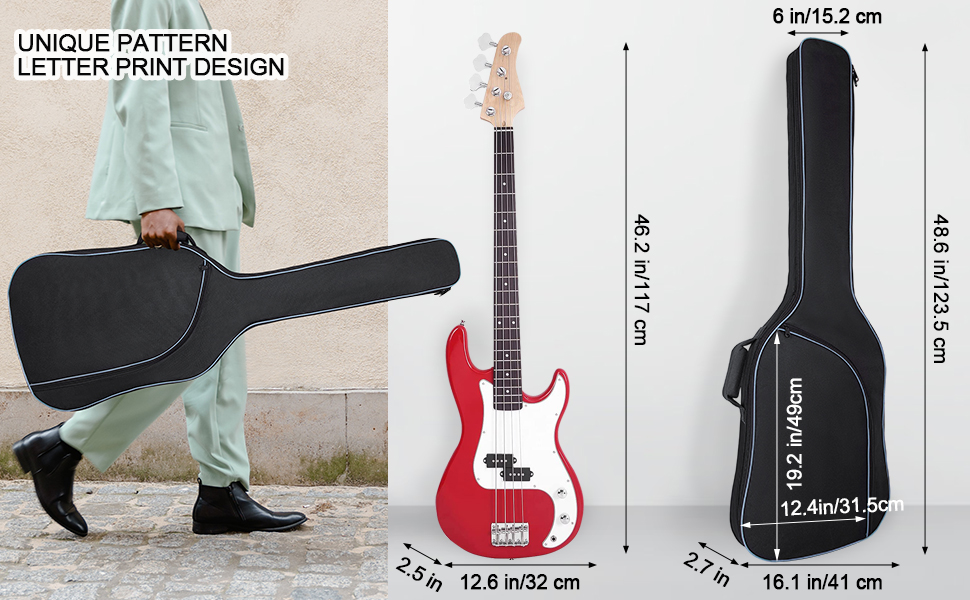 - Portable electric bass guitar bag is a nice gift for guitar beginner, students, guitarist. Such as birthday gifts, back to school gifts, party gifts, surprise gifts.(NOTE: Please measure your bass before purchase, make sure you get the right size bag.)