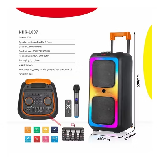 Turn any event into a party with the NDR 1097 Bluetooth Karaoke Speaker, built for powerful sound, deep bass, and complete entertainment. Featuring dual 8-inch woofers, this speaker delivers loud, clear, and punchy audio perfect for home parties, events, DJ use, and outdoor gatherings.