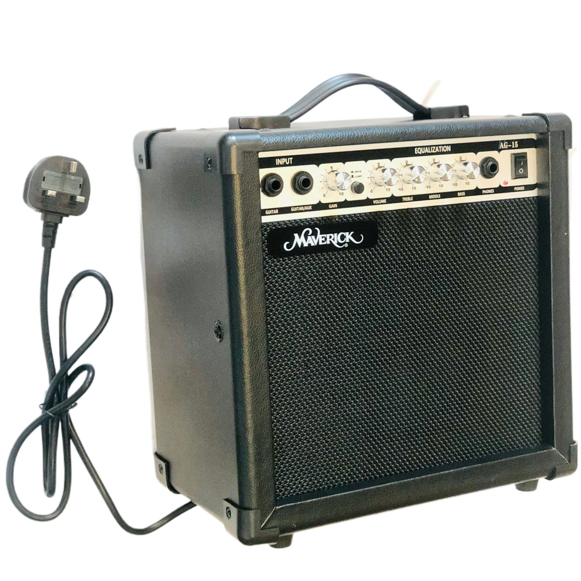 The Maverick AG-15 Guitar Amplifier is a compact and powerful 15-watt amplifier designed for both acoustic and electric guitars. Ideal for beginners, students, and home practice, this amp delivers clear, balanced sound with simple and effective equalization controls for tone shaping.