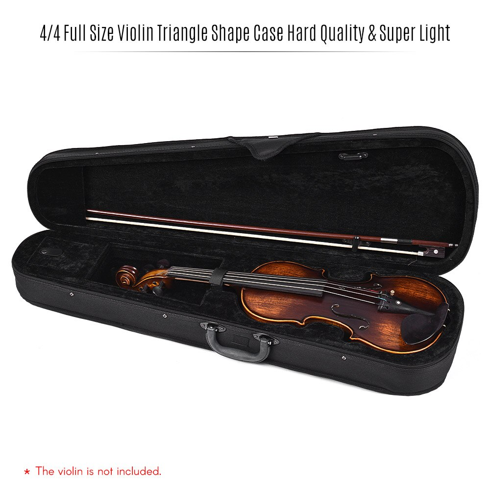 The hard outer shell helps protect the violin from impact, pressure, dust, and minor moisture, while the padded interior keeps the instrument secure during transport. Its triangle shape provides a compact, balanced design that is easy to handle and store.