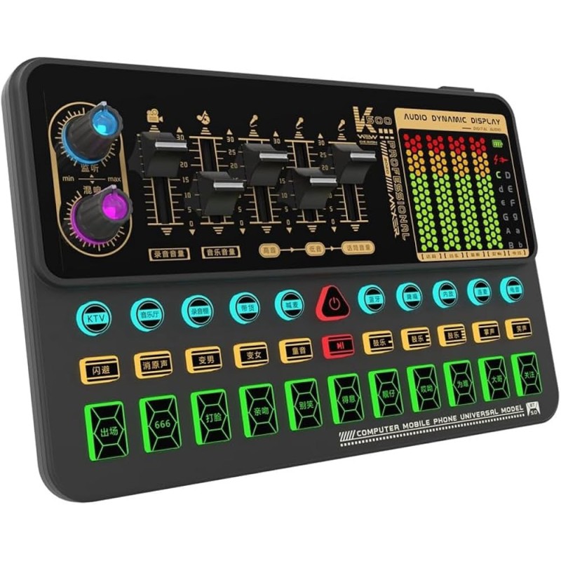 - Sound Card Features:12 voice effects,pitch control,reverb,EQ adjustment,live monitoring
