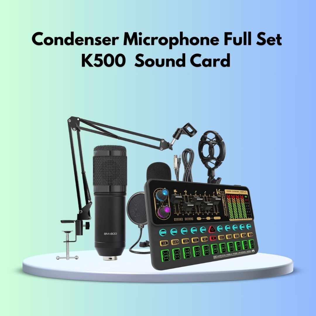 Level up your audio game with the K500 Sound Card With Condenser Mic – an all-in-one solution for creators,gamers,streamers,and musicians. Designed for real-time audio processing,this professional sound card bundle includes a high-quality condenser microphone,perfect for podcasting,YouTube content,live streaming,and online performances.