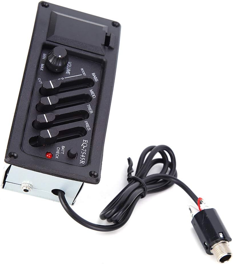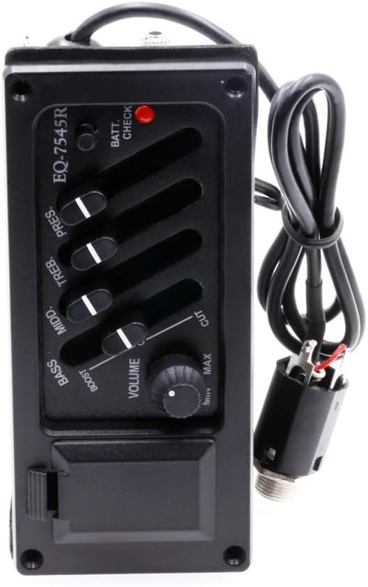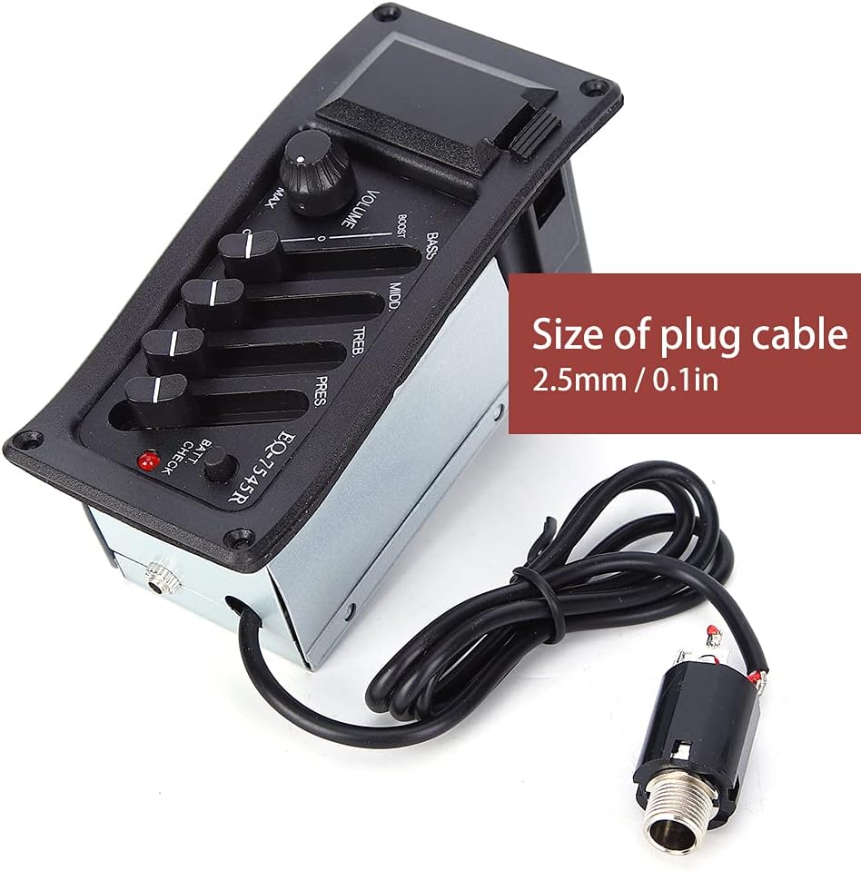 Battery-powered for stable performance, this EQ unit is compatible with most standard acoustic guitars and is easy to install.