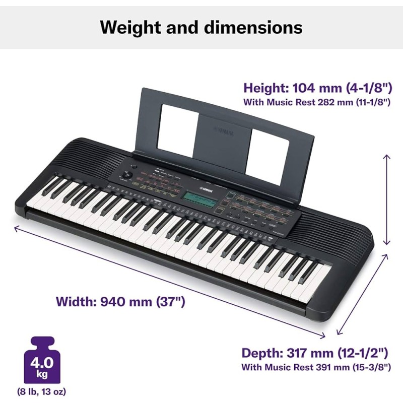 - In The Box: Yamaha PSRE283 Keyboard + 8mm Padded Bag for protect your instrument, Double X Keyboard Stand, Music Rest, Power Adaptor