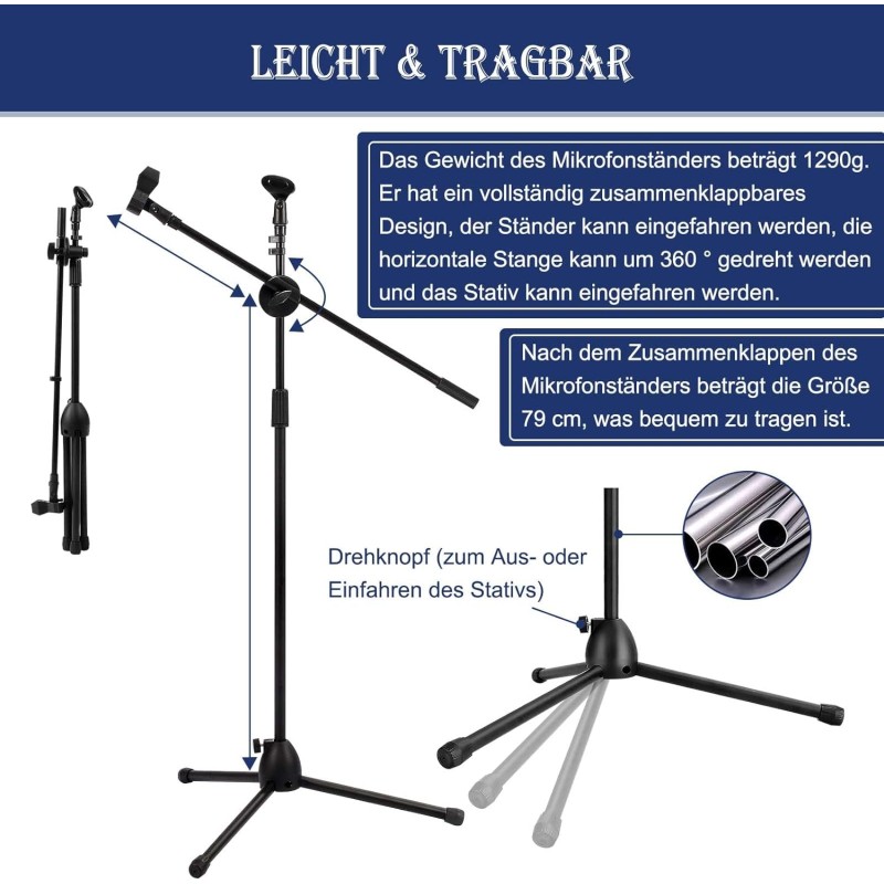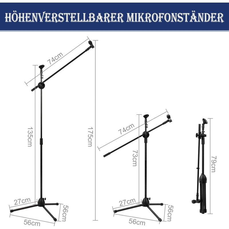 2 in-1 Dual-Use Microphone Stand Wired Wireless 3 Years Warranty Lifting Capacitor My Stage Performance Floor Mic Stand Professional Boom Microphone Stand Microphone Stand, Floor Microphone Stand with 2 Microphone Clamps, Swivel Arm and Adapter, 73-175 cm