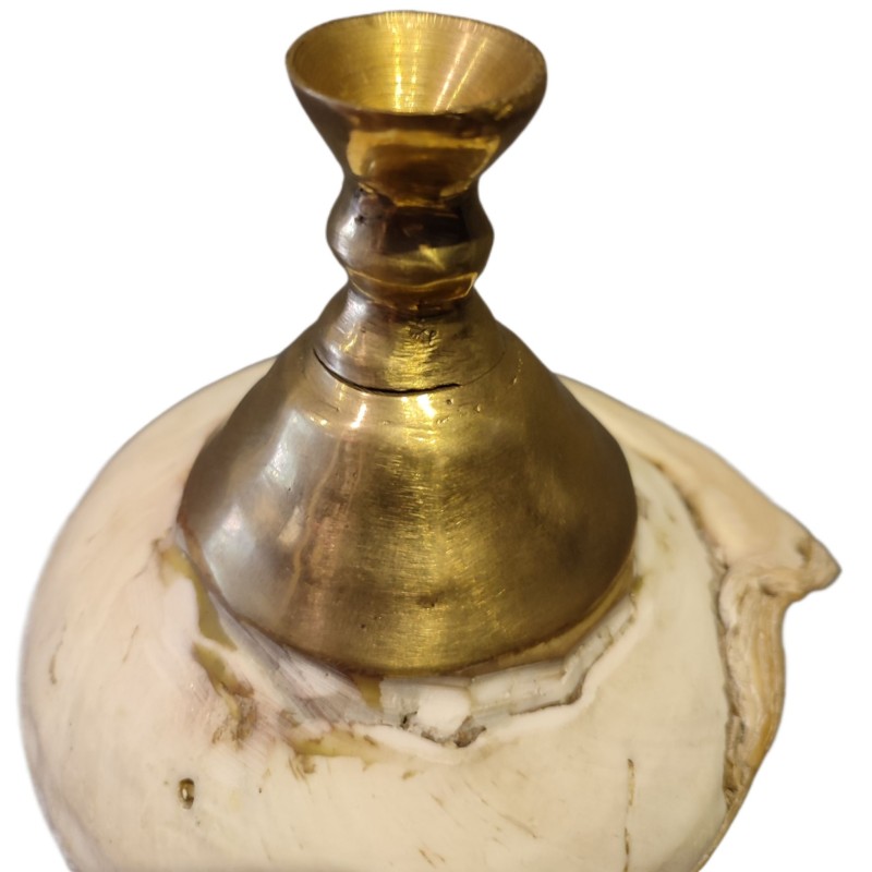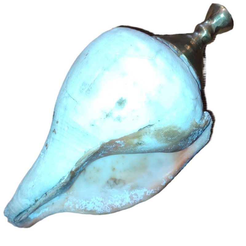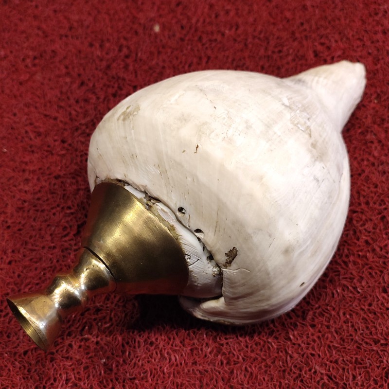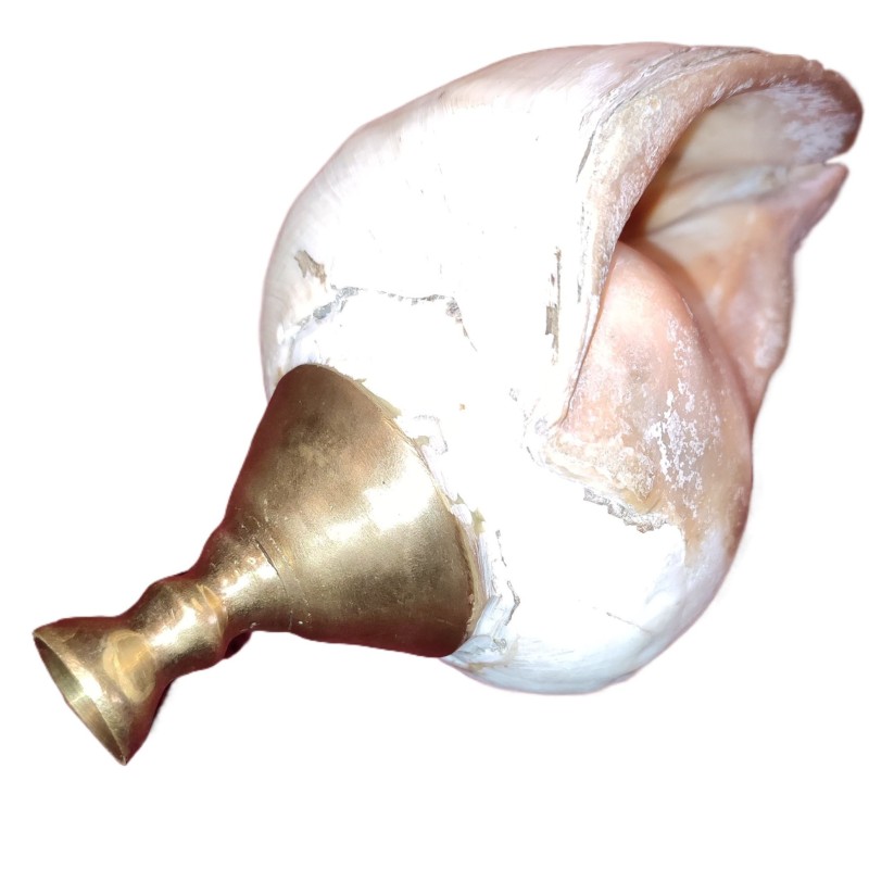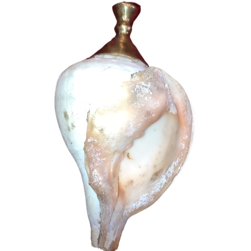 Sri Lankan Traditional Hakgediya Blowing Conch Shell with Brass Mouthpiece | Hakgediya (හක්ගෙඩිය) Large Sea Mollusk Shell Trumpet | Cultural Instrument for Festivals, Weddings & Auspicious Ceremonies | Traditional Blowing Conch Shell