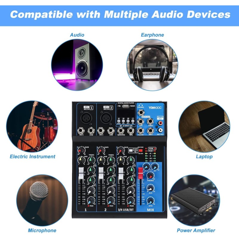 With smooth controls, clear audio output, and versatile connectivity, this mixer is ideal for musicians, content creators, DJs, and event setups.